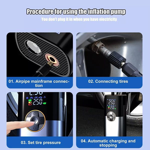 دارای 4 حالت باد از پیش تعریف شده مجهز به نمایشگر LED مجهز به چراغ قوه اضطراری مجهز به پاوربانک دارای باتری با ظرفیت 5000 میلی آمپر ساعت چراغ LED داخلی و SOS چراغ LED داخلی برای استفاده در شب ویژگی چشمک زن SOS در مواقع اضطرار
