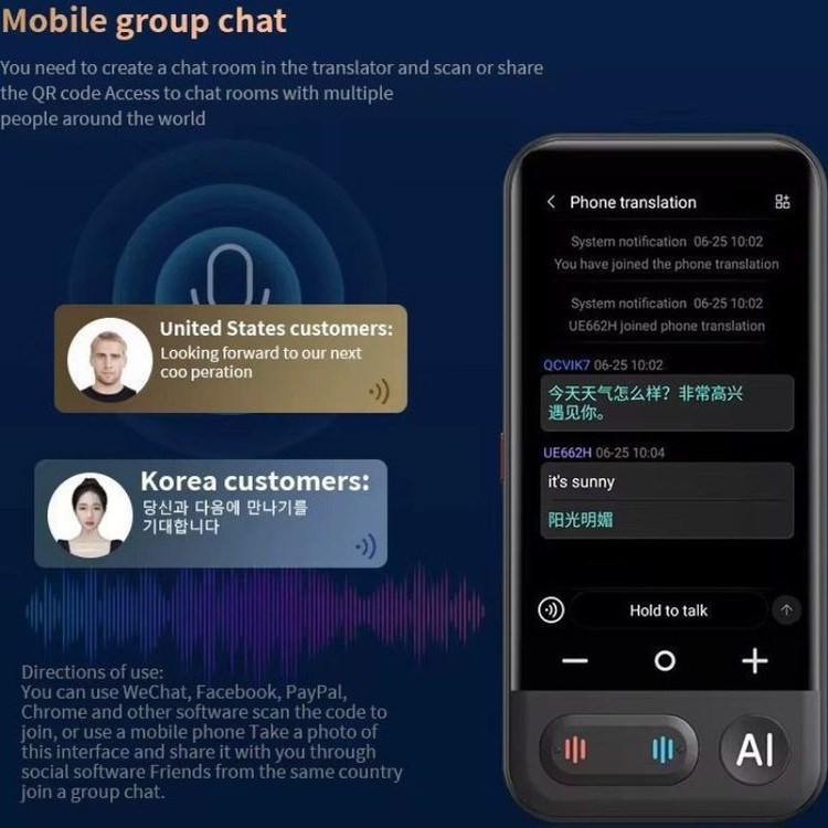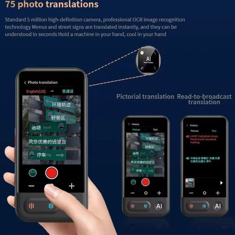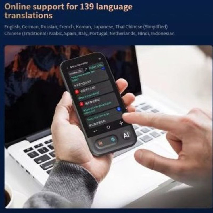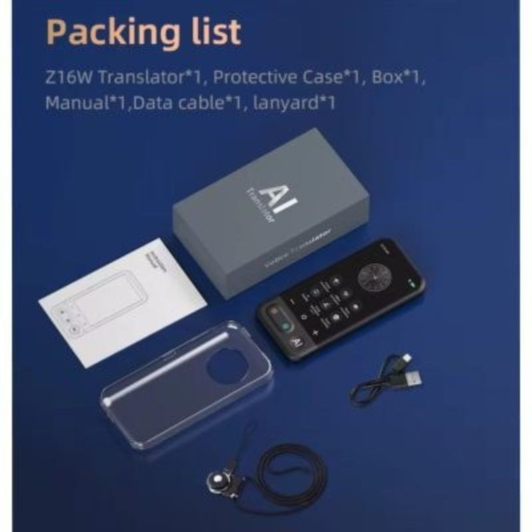 مترجم هوش مصنوعی هوشمند Z16 یک ابزار حرفهای برای ترجمه سریع و دقیق است که با پشتیبانی از ۱۳۹ زبان در حالت آنلاین و مجموعهای از زبانهای مهم از جمله زبان فارسی در حالت آفلاین ، امکان استفاده در سفر، محیط کار یا زمانهای بدون دسترسی به اینترنت را فراهم میکند. این مدل با داشتن صفحهنمایش ۴ اینچ IPS، پردازنده چهارهستهای، حافظه داخلی ۸ گیگابایت و قابلیت افزایش فضای ذخیرهسازی با کارت TF، عملکردی روان و قابل اعتماد ارائه میدهد. دوربین پشتی ۵ مگاپیکسلی با فوکوس خودکار و اسکن سریع، ترجمه متون چاپی را ساده کرده و میکروفونهای دوگانه با حذف نویز، دقت ترجمه صوتی را افزایش میدهند. باتری ۱۵۰۰ میلیآمپر ساعتی دستگاه تا ۱۶ ساعت کار مداوم و حدود ۱۰ روز حالت آمادهبهکار را پشتیبانی میکند و با امکاناتی مانند ترجمه یککلیکی، گفتوگوی روبهرو، تفسیر همزمان و ترجمه تصویری، به ابزاری کامل برای برطرف کردن موانع زبانی در موقعیتهای مختلف تبدیل شده است.